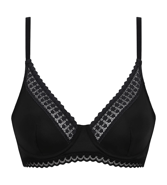 Dámská krajková podprsenka s kosticí. Rafinovaný výstřih do V z grafické krajky. Košíčky s kosticemi pro přirozené křivky.