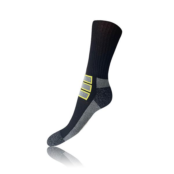 Ideální ponožky pro turistickou a pracovní obuv – polstrovaná podrážka pro vysoký komfort. Jsou prodyšné díky integrovaným vzduchovým zónám. Pleteny z otěruvzdorné příze na patě a špičce pro vyšší odolnost. Uvnitř froté na špičkách, patě a a Achillově patě.
