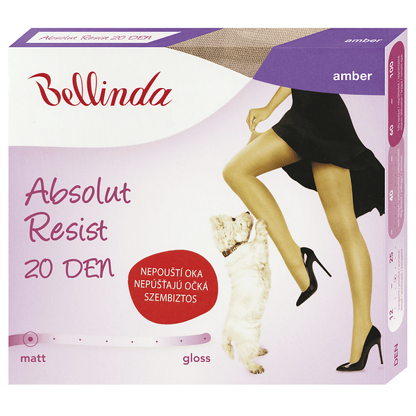 Nová generace transparentních punčochových kalhot Absolut Resist 20 DEN, na kterých nikdy netečou oka. Jsou vyrobeny z příze Lycra Fusion technologií 3D pletení. Díky tzv. svařovaným bodům zabraňují pouštění ok. Úžasně vypadající nohy po celý den. Moderní ženy mohou zapomenout na puštěná oka a cítit se svobodně po celý den.