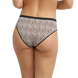 Dámské kalhotky v klasickém vzoru s trendy potiskem. Jemná krajka na pásku podtrhuje ženskost. Vhodné pro každý den.
