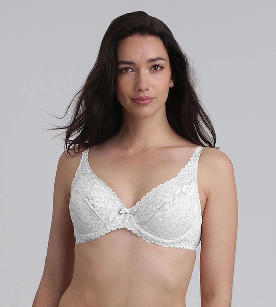 Nevyztužená podprsenka s kosticí, široká ramínka pro dokonalou podporu, 4 háčky na zapínání od velikosti D.