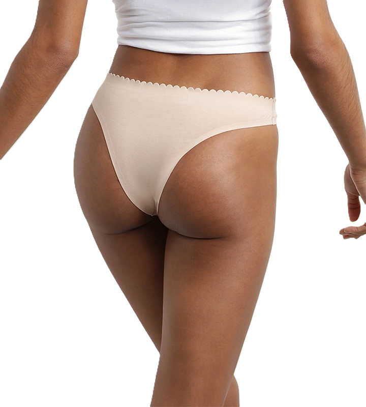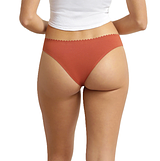 Dámská bezešvá bavlněná tanga. Laserem řezané okraje a tepelně spojované vrstvy materiálu zajišťují úplnou neviditelnost prádla pod oblečením. Vhodné pro každodenní použití.