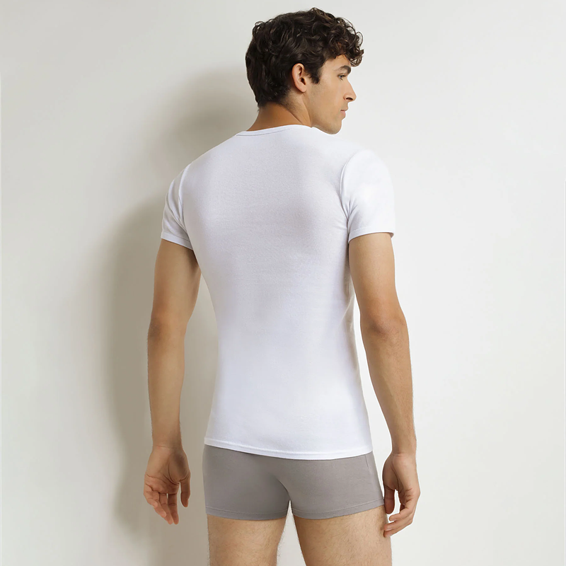 Balení dvou pánských triček je vyrobeno z velmi měkké a příjemné bavlny, snadno se nosí samostatně nebo pod svetrem. Jednoduchý, přiléhavý střih s kulatým výstřihem se hodí ke všemu a zajistí elegantní vzhled.