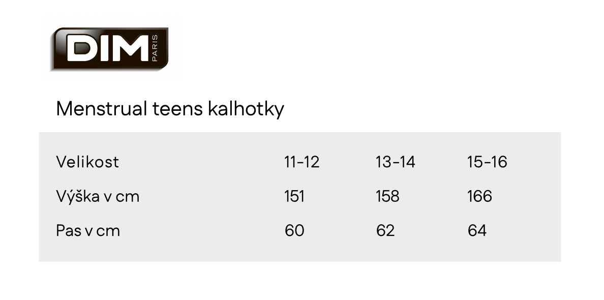 Dívčí menstruační kalhotky noční DIM TEENS MENSTRUAL BRIEF STRONG
