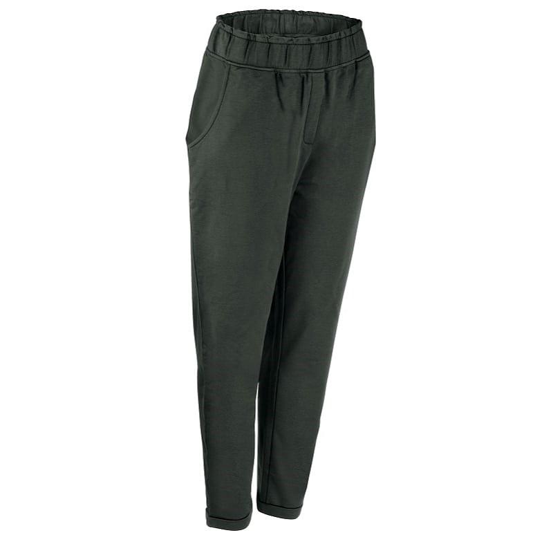 Moderní kalhoty ke sportovnímu každodennímu outfitu, elastický pas, boční kapsy a falešný zip, prošívané konce nohavic, zkrácená délka se zúženými nohavicemi.