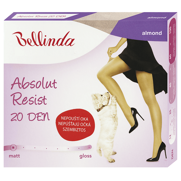 Nová generace transparentních punčochových kalhot Absolut Resist 20 DEN, na kterých nikdy netečou oka. Jsou vyrobeny z příze Lycra Fusion technologií 3D pletení. Díky tzv. svařovaným bodům zabraňují pouštění ok. Úžasně vypadající nohy po celý den. Moderní ženy mohou zapomenout na puštěná oka a cítit se svobodně po celý den.